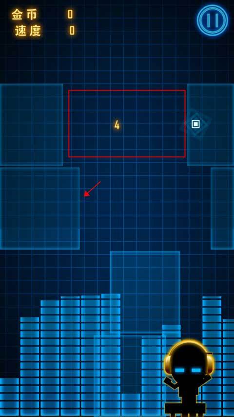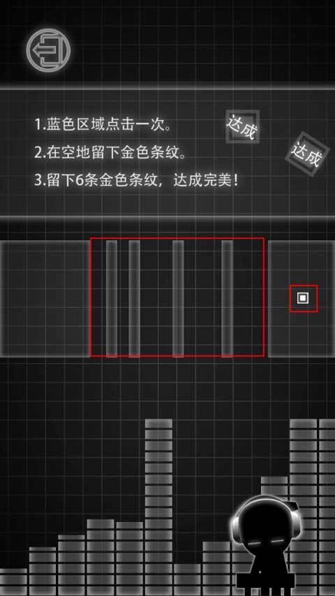 玩家需要留意方块从右向左移动的过程:画面中方框明亮的区域不能点击屏幕,只有被红色框选中的区域允许点击;若在此区域连续点击,屏幕上会出现金色条纹。