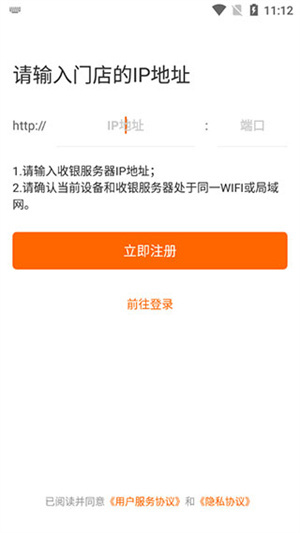 若该手机曾安装过点菜宝,且已保存IP地址、端口号(此前有过登录记录,目前处于未登录状态),则会直接跳转至登录界面。