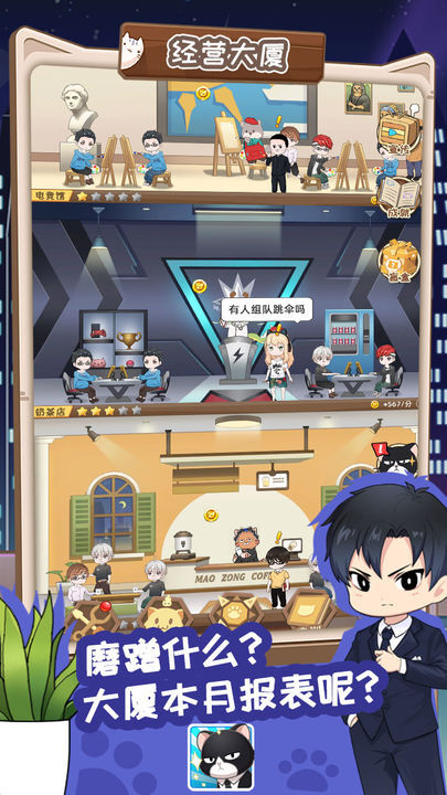 猫总大厦是一款围绕妖灵经营展开的商业模拟游戏,玩家在游戏里能安排各类妖灵打理店铺来赚取营业额。若想获得更高的营业额,装修是必不可少的环节。游戏中丰富多样的装修风格给玩家提供了不同的选择,只有持续提升店铺的装修品质,才能吸引更多顾客,而客流量带来的收益是打造商业大厦的重要资金支撑。