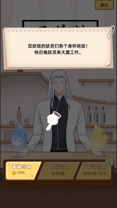 百妖馆里的妖灵个个都有拿手绝活,点击“召唤”按钮,就能招募它们来大厦任职啦。