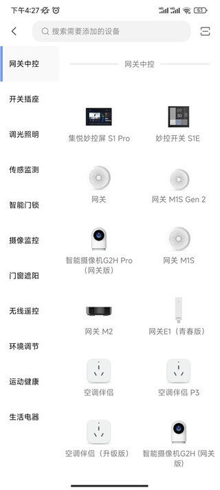 3、多种设备分类清晰,既能让人一目了然地挑选,也可以通过搜索快速找到想要添加的设备。