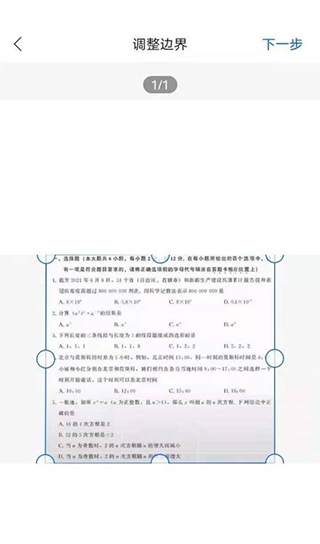 2、拍照好之后调节下边框进行下一步。