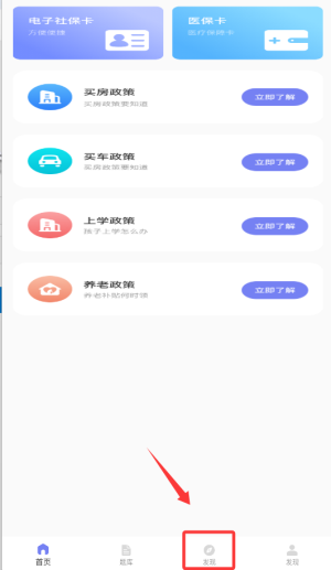 1打开应用完成登录后,找到界面下方的导航区域,点击其中的“发现”选项,即可进入整合各类学习内容的资源中心页面。