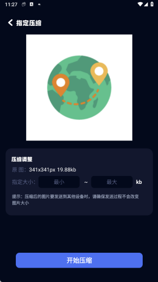 2、在指定的压缩页面上传图片,接着执行开始压缩的操作;