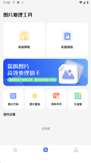 3、在图片处理界面中,用户能够开展自由拼贴、长图拼贴,还能进行图片打码、图片叠加以及添加水印等操作;