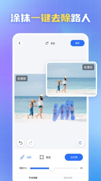 1. 可随时查看水印处理前后的效果,支持即时对比查看。