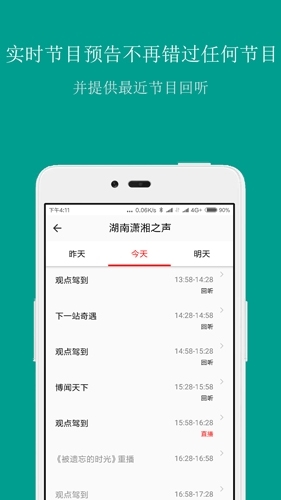2、FM手机调频收音机不仅支持电台栏目的预约收听,还能实现近期节目的回放功能。
