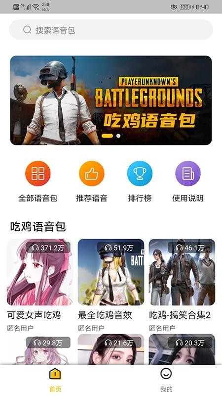 浏览到吃鸡的语音包,在线即可发布匿名发布语音;