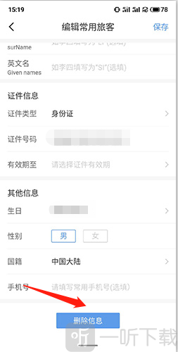 订票助手12308怎么删除联系人