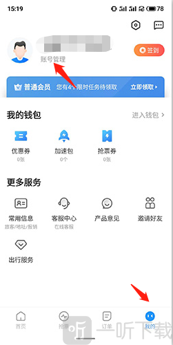 1.进入订票助手首页后,点击"我的"
