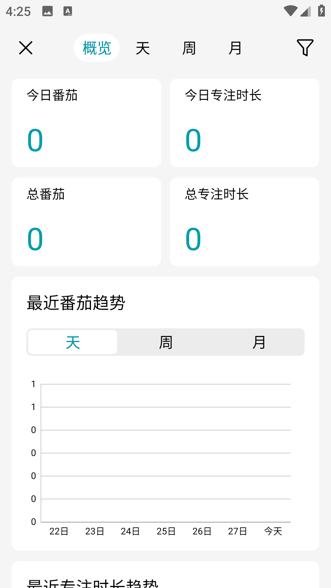 3点击“统计数据”选项,就能看到近期计时功能的使用数据记录。