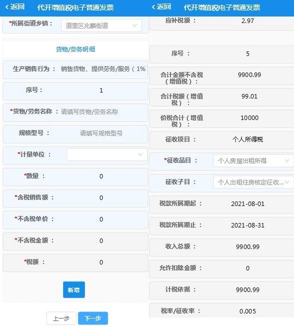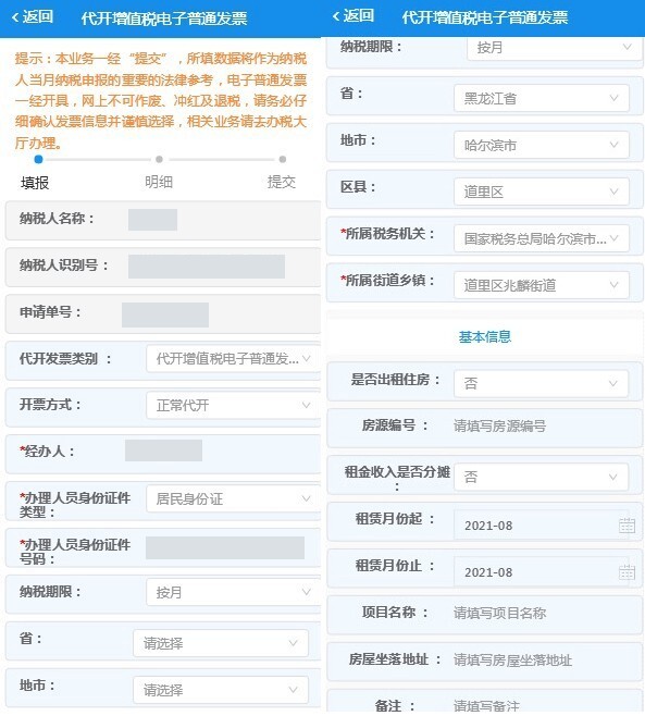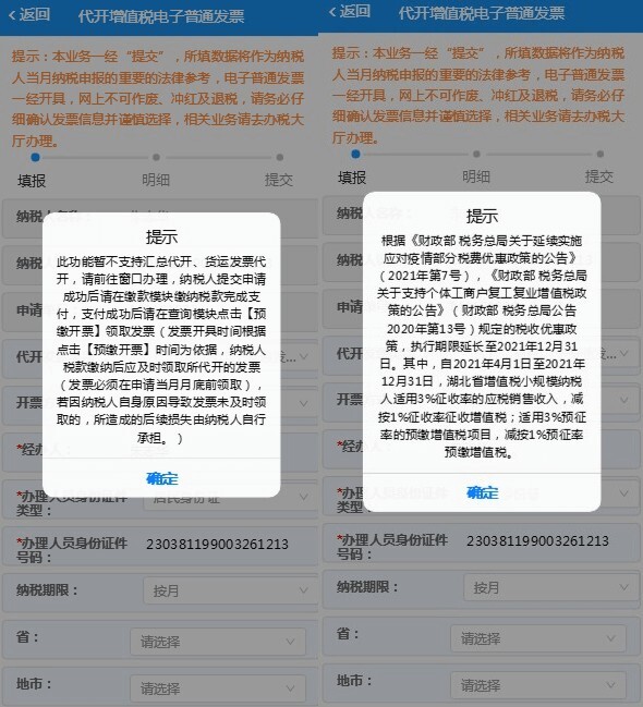 进入【代开增值税电子普通发票申请】功能后,请留意查看提示信息。