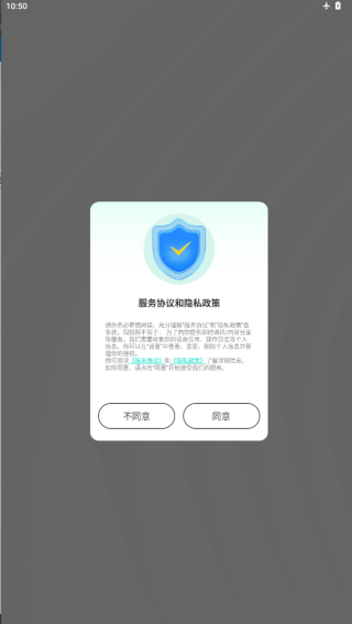 软件安装完成后打开,会弹出是否同意的提示,点击同意”即可进入注册界面。