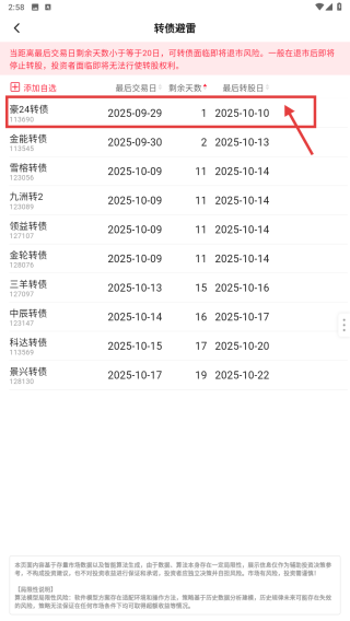 4在可转债风险提示的详情页面中,可查询特定可转债(例如某只具体标的)的最后交易日期、距离当前的剩余天数以及最后转股日期等关键信息。