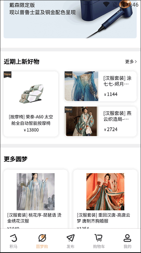 1首先,打开软件后,在“圆梦购”界面里找到你选定的商品并点击它。