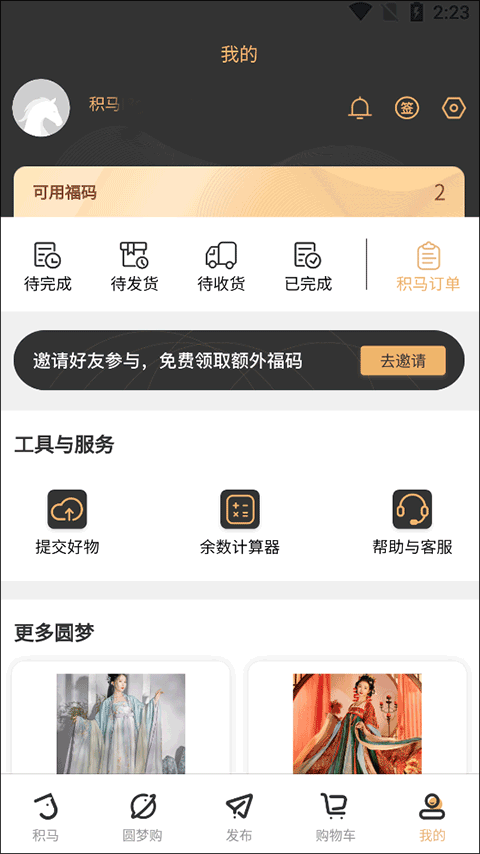 积马购物如何查看可用福码?
