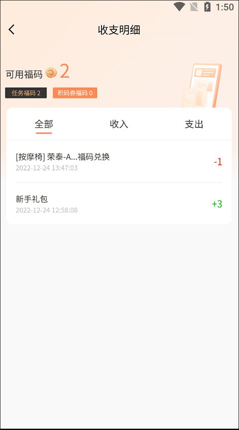 3、最后在收支明细中就能看到福码的具体情况了。
