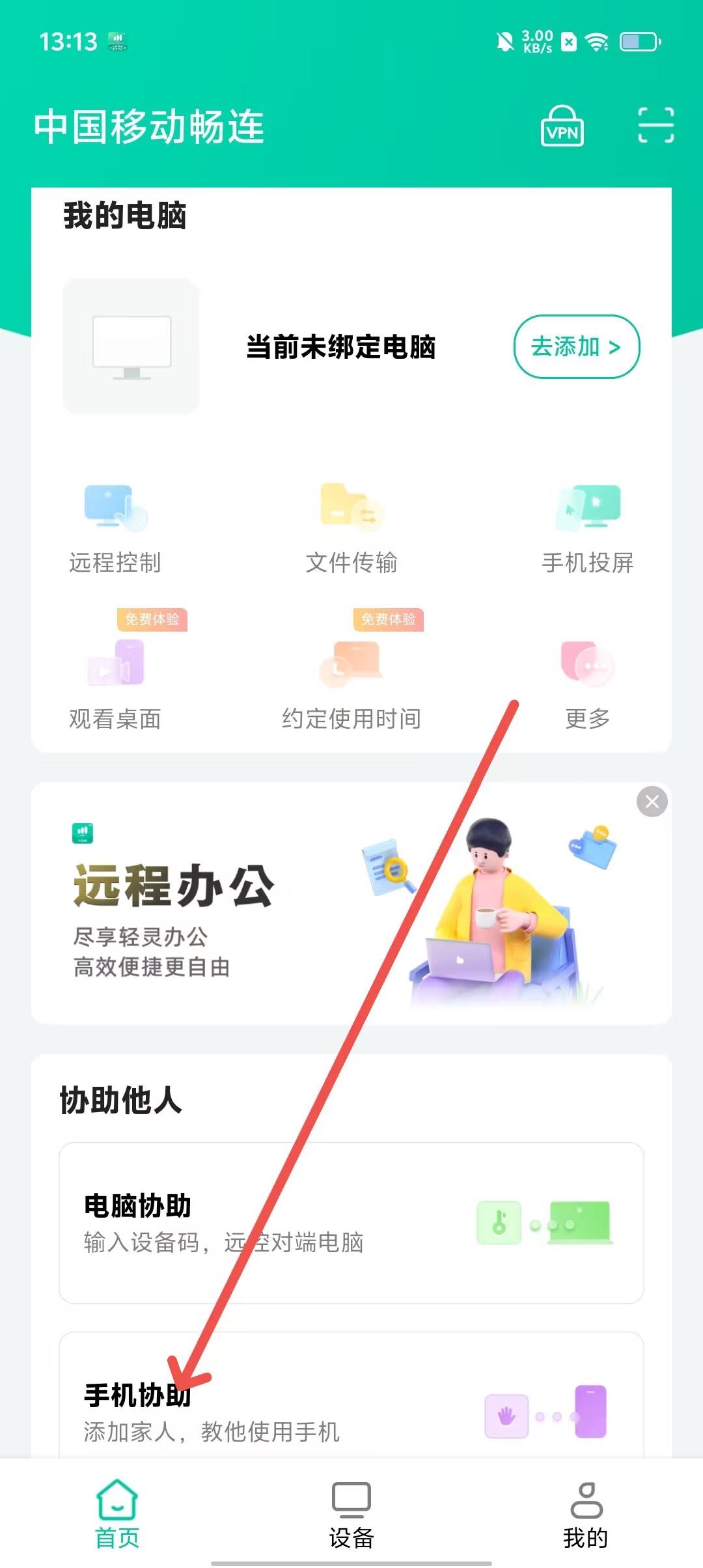 移动畅连App是中国移动推出的远程控制应用,具备手机协助、远程操控电脑、电脑管控、文件传输、手机投屏等实用功能,并且支持跨设备、跨系统开展远程控制操作,各项功能使用便捷,适用于远程办公、在线学习等多种场景,能够一站式满足用户的各类使用需求,赶紧来体验吧!