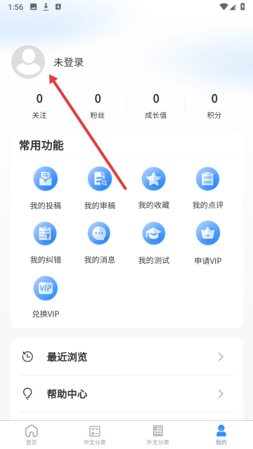 2、个人中心点击【未登录】,跳转至登录注册界面。