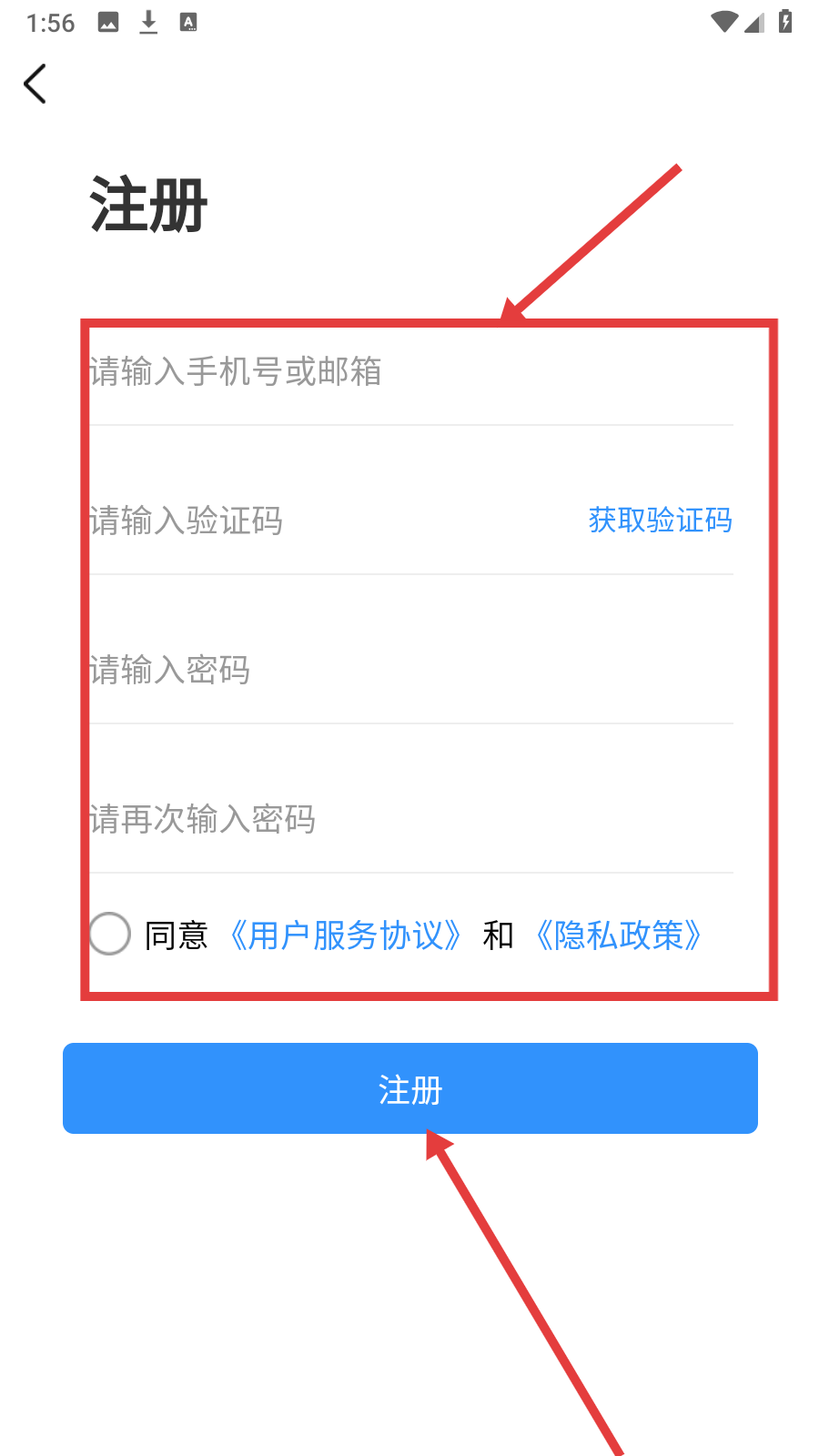 4在完成手机号、邮箱、验证码和密码的填写后,点击注册按钮就能完成整个注册流程。