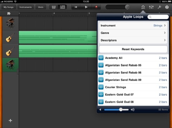 1、使用触控乐器、音频录音和乐段来录制、编配和混音乐曲,最多可达 32 条轨道