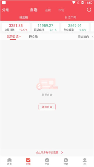 4、在“自选”中可以选择自己想要的股;