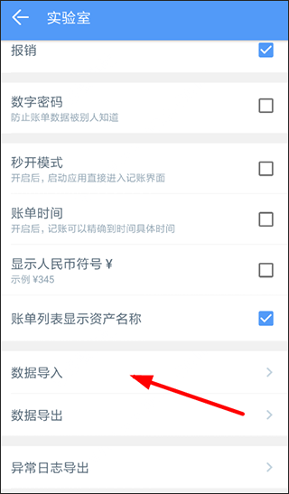 4、进入到“设置”界面之后,大家还可以通过“实验室”功能导出或者导入账单数据,方便自己来管理账单,感兴趣的朋友都可以试一试!