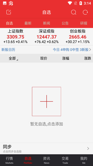 3、在自选股,可以在这里进行添加并管理,登录账号即可同步