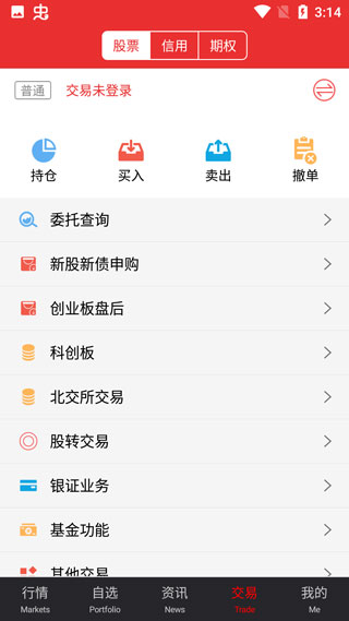 4、在交易页中,可以进行买入、卖出、撤单、查询、持仓等操作